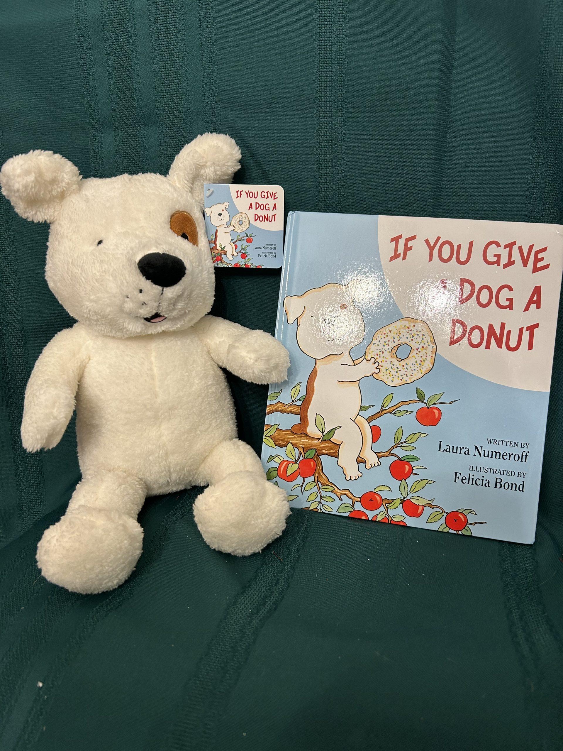 “If you Give a Dog a Donut” Book with matching stuffed dog.