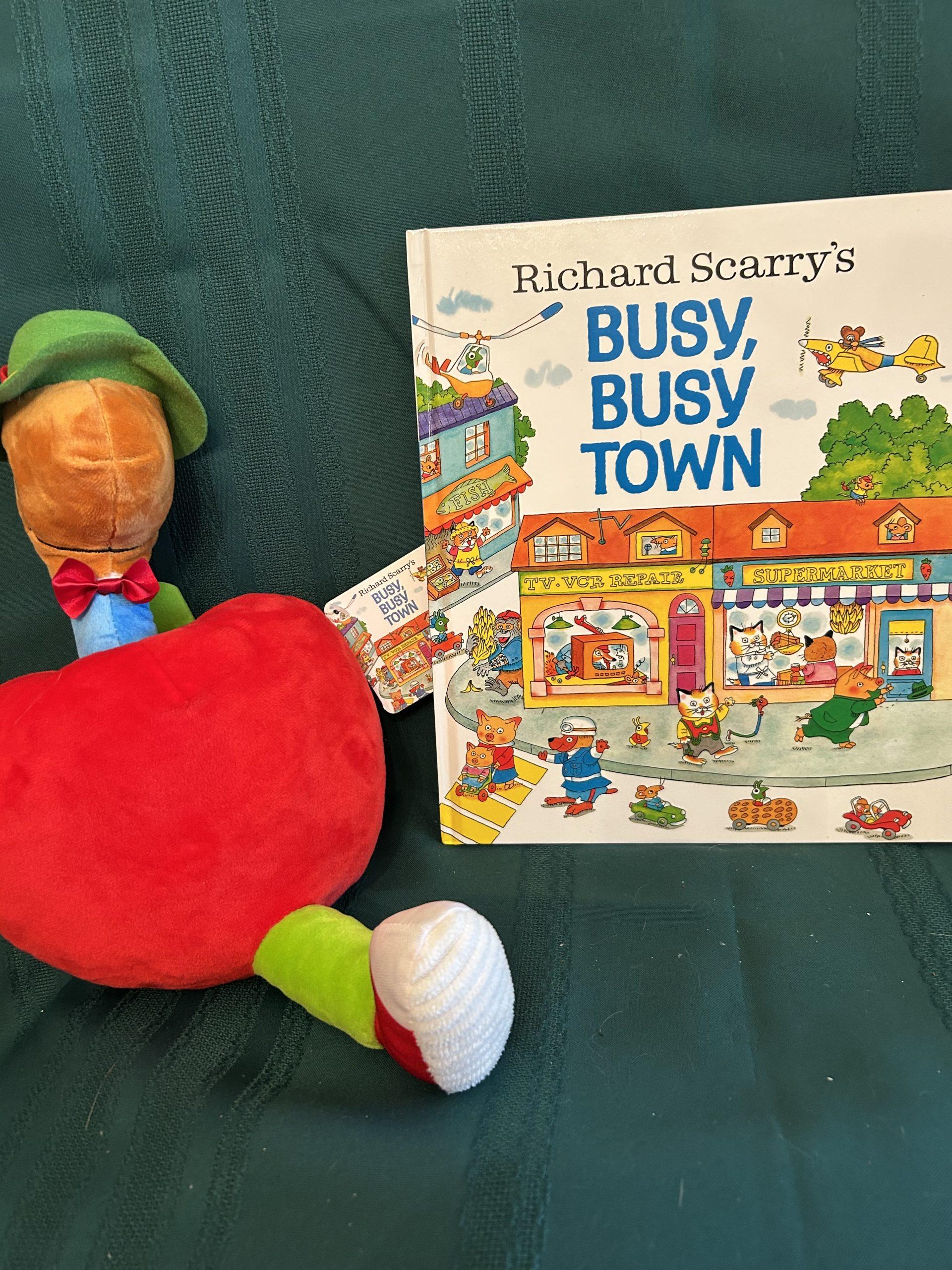 “Busy, Busy Town” Book with matching apple & worm stuffed toy.