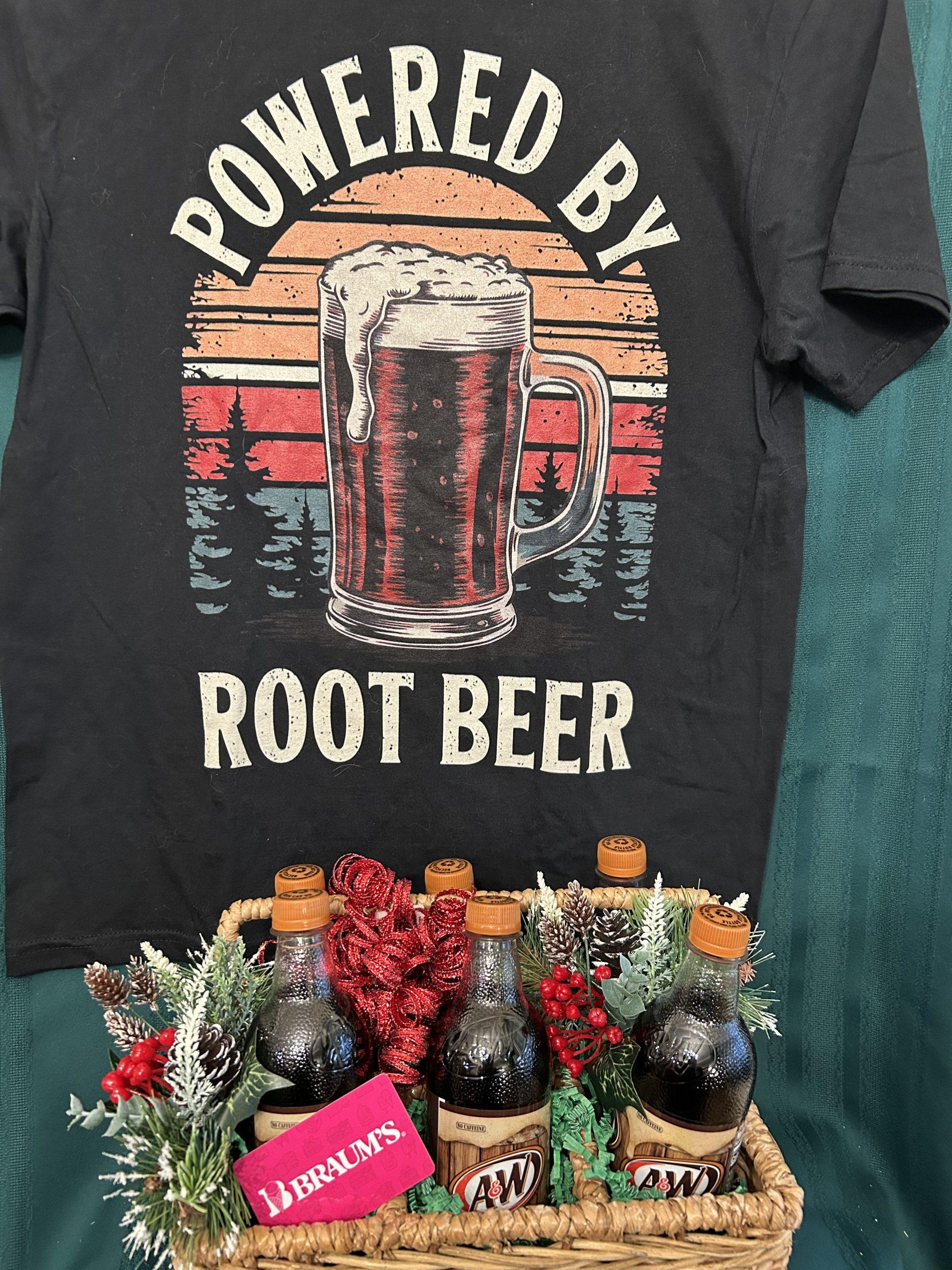 Six bottles A&W Root Beer, A&W magnet, a “Powered by Root Beer” T-shirt (size large) and a $25.00 Braum’s gift certificate.